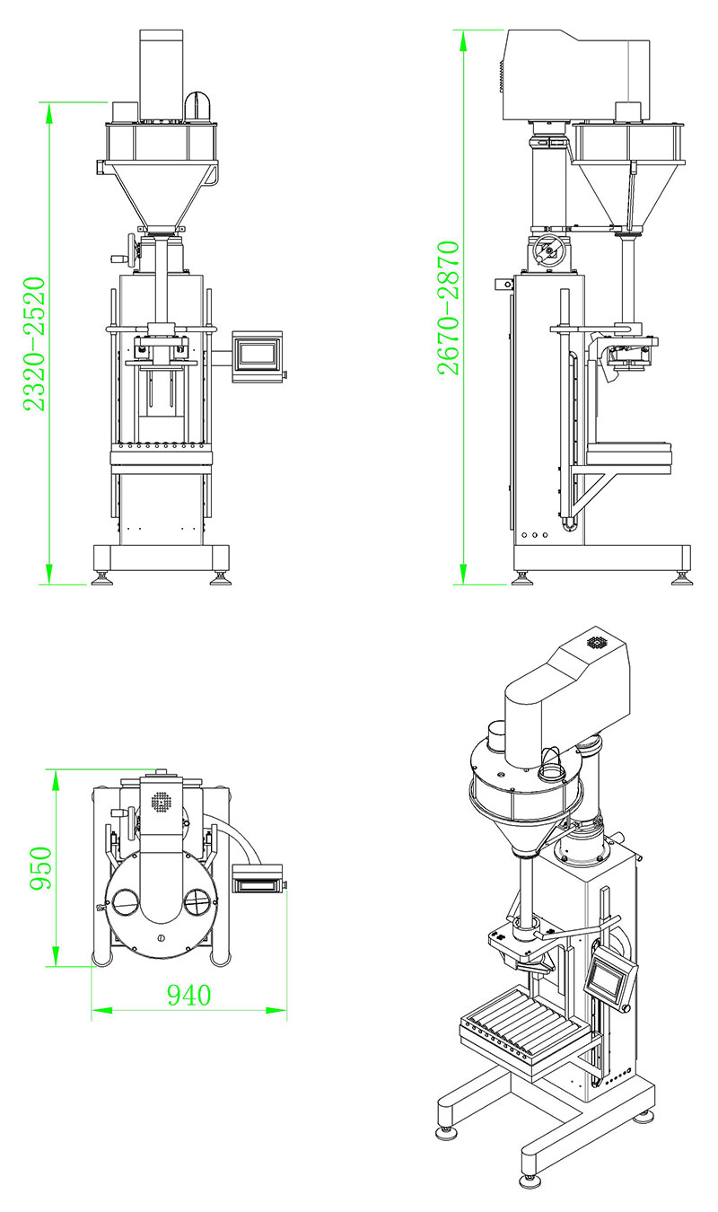 伺服馬達(dá)帶動(dòng)托盤升降,升降速度可任意設(shè)定,充填時(shí)基本上無粉塵揚(yáng)出污染環(huán)境。