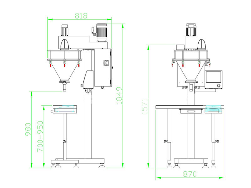 設(shè)計(jì)成稱重反饋比重跟蹤式,克服了因物料比重變化而致使包裝重量發(fā)生變化的缺點(diǎn)。