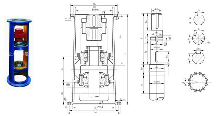 注:圖示所注“h”僅與本樣本BLD、LC-Ⅱ、DC-Ⅱ系列減速機相配,如選用其他型號或其他廠家減速機,“h”需另行計算。增高后的LSJ型機架其下部空間高度可容納205、206或207型雙端面機械密封。